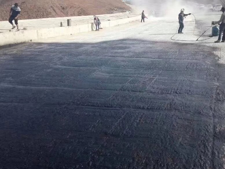 備注:為達(dá)到好的施工效果, 改性瀝青PB2型聚合物道橋?qū)S梅浪苛闲璨捎脙纱畏执螌嵤叵率状魏偷诙螌嵤┲g的時間間隔應(yīng)在 4~8h, 改性瀝青PB2型聚合物道橋?qū)S梅浪苛鲜┕ず?12 小時,即可進(jìn)行瀝青層的施工。